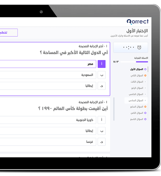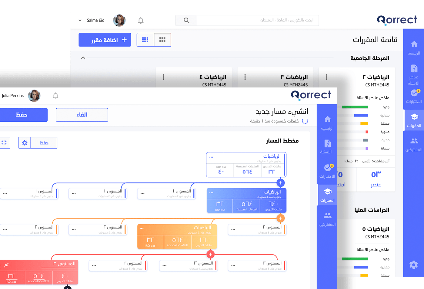 الأقسام الرئيسية لنظام Qorrect للتقويم الأكاديمي وميكنة الاختبارات