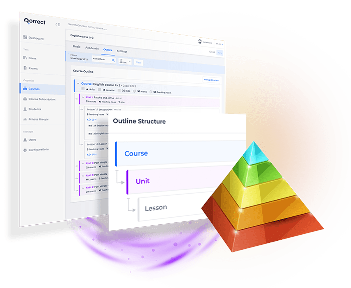Want to customize your desired course structure? Break down your courses into units, chapters, lessons, etc. with Qorrect's fast course builder. We deliver awesome, out-of-the box design tools to get you started building your course in seconds and linking them to your ILOs and cognitive levels