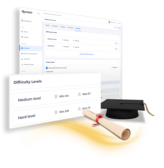Get to know what it feels like to build an unlimited number of courses with dynamic structure, from A to Z with our course management system. Manage your course items, to reach the desired results: the easiest way to link your courses with exams is now possible!